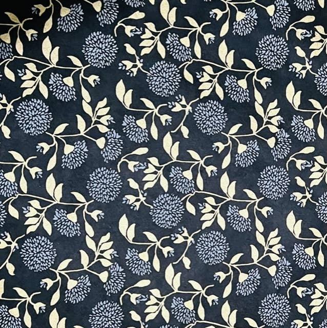Vintage Flower & Leaf, Gold & White on Black Paper