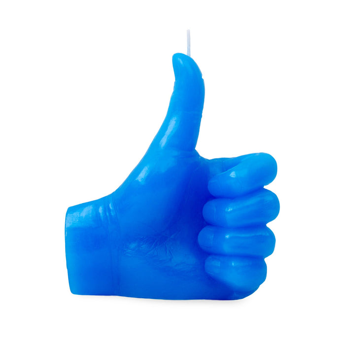 Blue candle in the shape of a hand with the thumb up simulating a "like". It has very well defined details and a perfect finish. The perfect accessory to illuminate or decorate any corner of the house in a fun and original way.